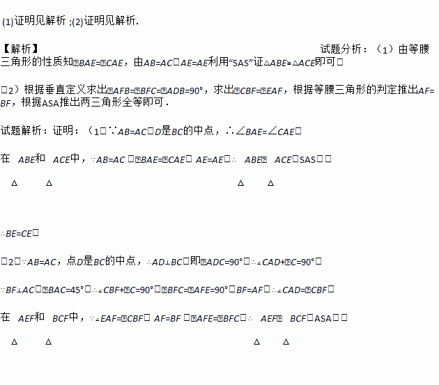 (2)如图,若BE的延长线交AC于点F,且BF⊥AC,垂足为F,∠BAC=45?,原题设其它条件不变,求证:△AEF≌△BCF.
