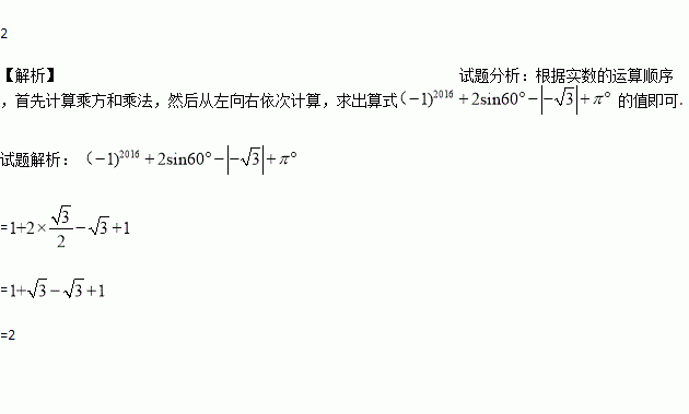 计算:(﹣1)2016+2sin60°﹣|﹣|+π0.