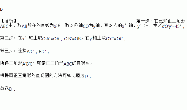 画正三角形ABC(如图)水平放置的直观图△A′B′C′,正确的是( )