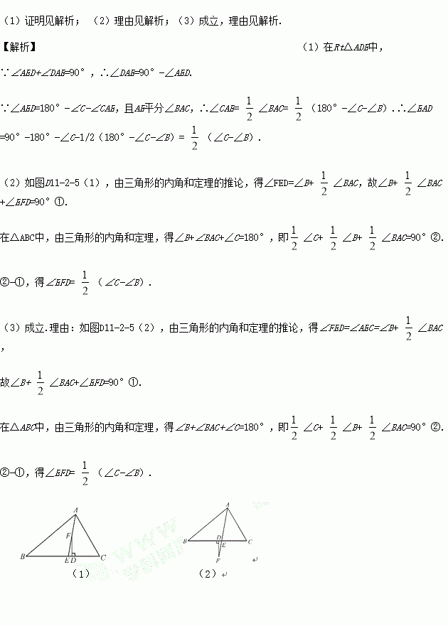 (1)如图,在△ABC中,AD⊥BC于点D,AE平分∠BAC,且∠C大于∠B.求证:∠EAD=12(∠C-∠B).