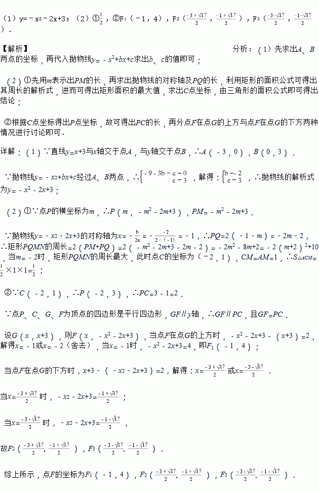 ②在①的条件下,当矩形PMNQ的周长最大时,G是直线AC上一点,F是抛物线上一点,是否存在点G,使得以点P、C、G、F为顶点的四边形是平行四边形?若存在,请求出F点的坐标;若不存在,请说明理由.