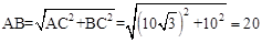 ∵AB=OB=20(千米),∠AOC=30°,