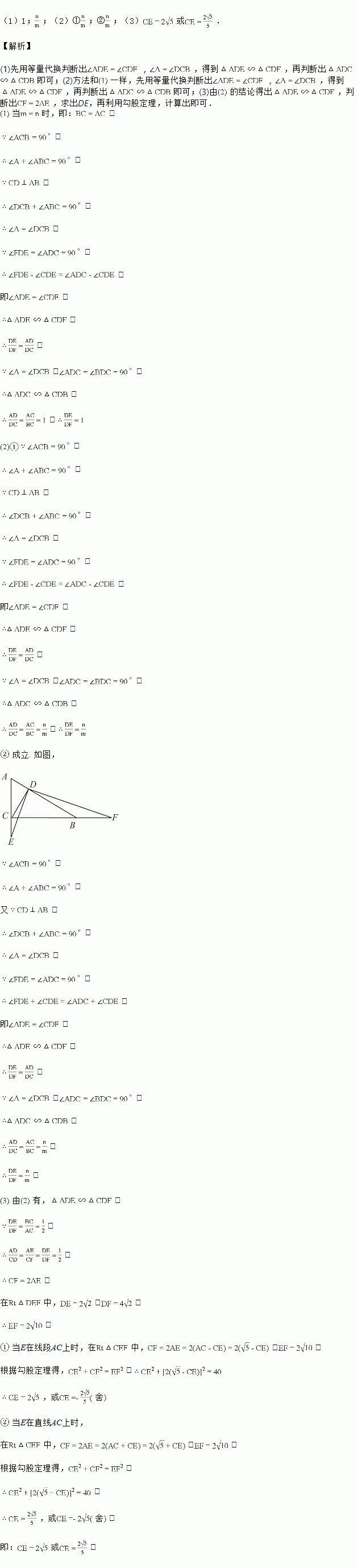 (1)探究发现:如图 1,若 m=n,点 E 在线段 AC 上,则