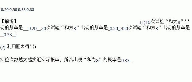 (1)10次试验“和为8”出现的频率是_________,20次试验“和为8”出现的频率是______,450次试验“和为8”出现的频率是__________;