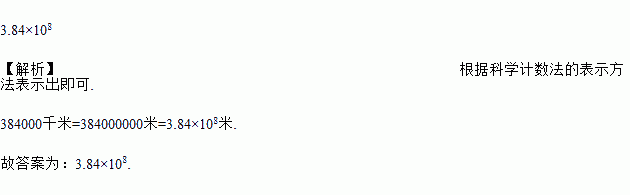 中国月球探测工程的“嫦娥一号”发射升空飞向月球,已知地球距离月球表面约为384 000千米,那么这个距离用科学记数法表示为________________米.
