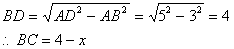 | 解:作出线段AD的垂直平分线,并设该直线与BD的交点为C,连结AC 设CD=x,则AC=x 在Rt△ABD中,由勾股定理得: 在Rt△ABC中,由勾股定理得: 解之得: 答:商店C与车站D的距离为3.125米。 |