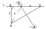 如图,某大学A与公路l的距离AB为3千米,又与这条公路上某车站D的距离为5千米,现在要在公路l上建一商店C,使它与大学A和车站D的距离相等,请用尺规画出商店C的位置(不写作法,保留作图痕迹),并计算商店C与车站D的距离。
