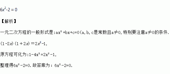 把方程(1-2x)(1+2x)=2x2-1化为一元二次方程的一般形式为____.