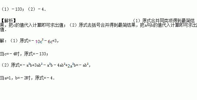 (1)3c2-8c+2c3-13c2+2c-2c3+3,其中c=-4;