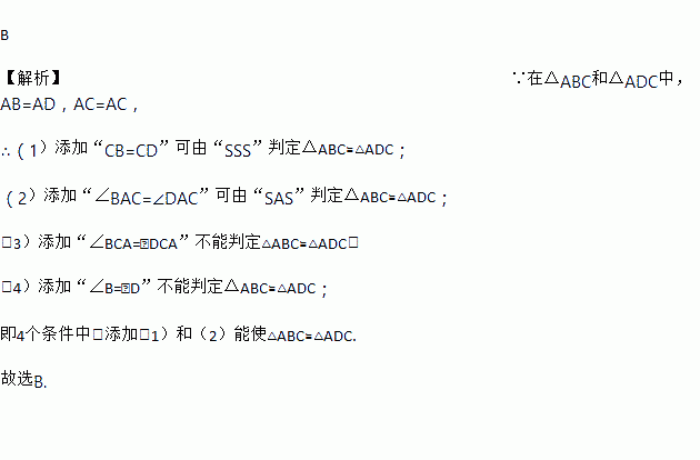 若再添一个条件后,能使△ABC≌△ADC的共有( )