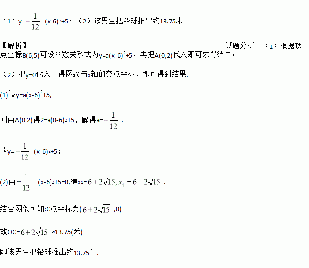 (2)该男生把铅球推出去多远?(精确到0.01米).