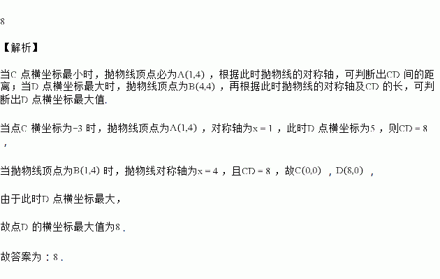 如图,点,的坐标分别为和,抛物线的顶点在线段上运动,与轴交于、两点(在的左侧),点的横坐标最小值为,则点的横坐标最大值为________.