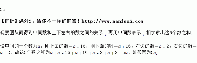 任意圈出如图所示的5个数,设中间的一个数为a,则这5个数之和是_____________(用含a的代数式表示).