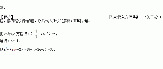 已知,x=2是方程2﹣(m﹣x)=2x的解,求代数式m2﹣(6m+2)的值是______.