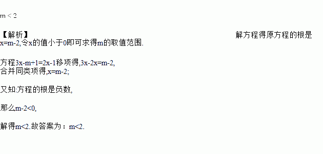 已知关于x的一元一次方程3x-m+1=2x-1的解是负数,那么m的取值范围是__________.