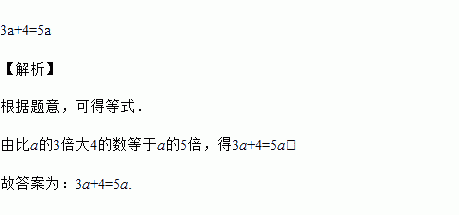 列等式表示:比a的3倍大4的数等于a的5倍,得 ________ .