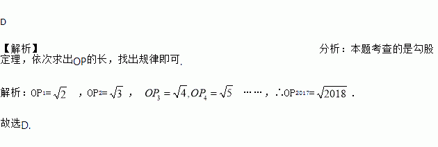 ;又过点P2作P2P3⊥OP2且P2P3=1,得OP3=2……依此法继续作下去,得OP2017=( )