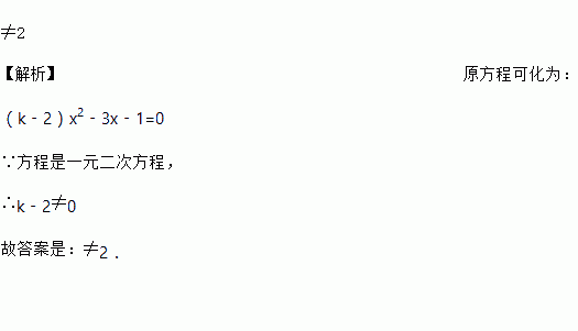 k_____时,关于x的方程kx2﹣3x=2x2+1是一元二次方程.