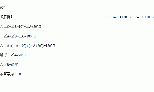 △ABC中,∠B=∠A+10°,∠C=∠B+10°,则∠B=_____.