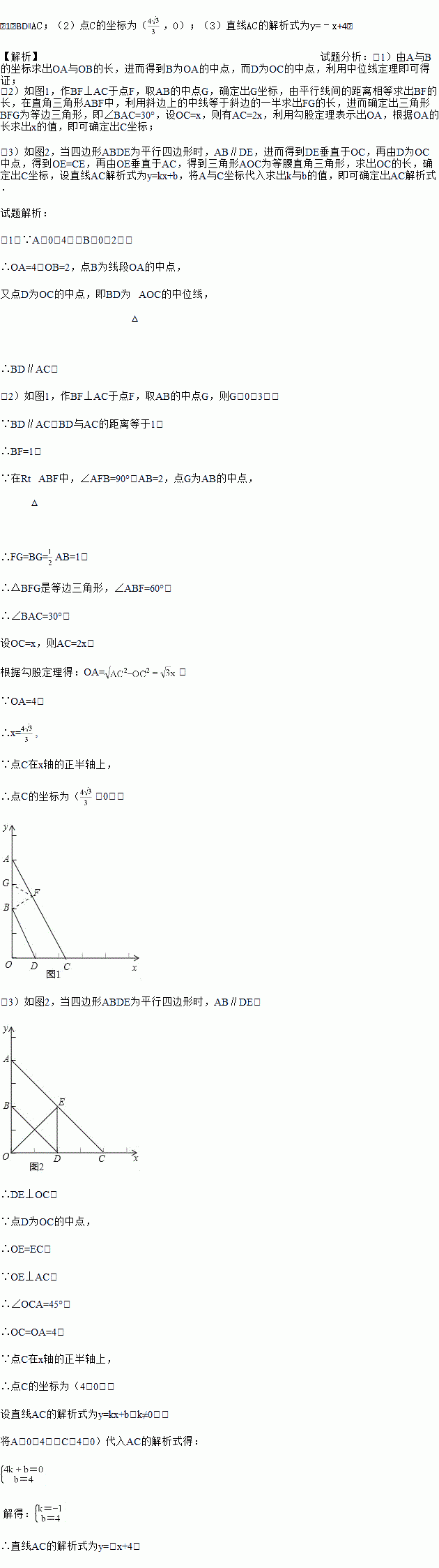 (3)如果OE⊥AC于点E,当四边形ABDE为平行四边形时,求直线AC的解析式.