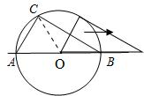 当△ABC沿直线AB向右平移,使点A与点O重合,点C平移的距离是半径的长,即点C的对应点在圆上.