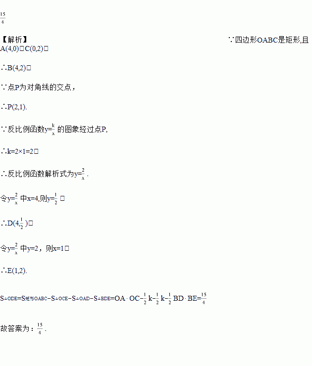 (k>0)的图象经过点P,与边BA、BC分别交于点D、E,连接OD、OE、DE,则△ODE的面积为______.