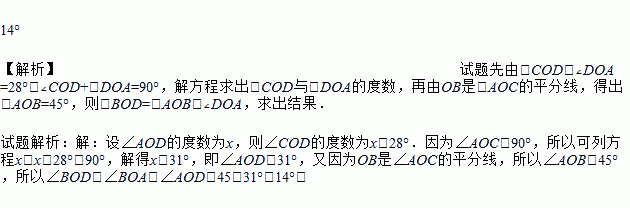 如图,已知∠AOC=90°,∠COD比∠DOA大28°,OB是∠AOC的平分线,求∠BOD的度数.