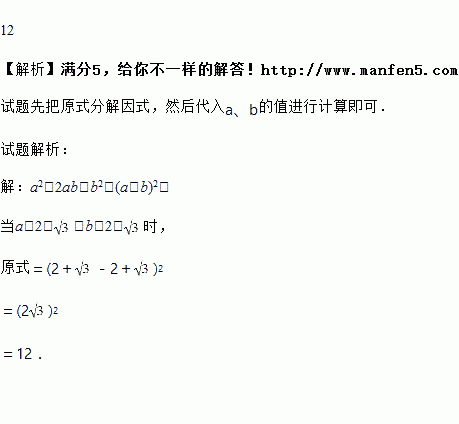 已知a=2+,b=2-,求a2-2ab+b2的值.
