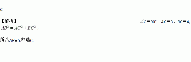 在Rt△ABC中,∠C=90°,AC=3,BC=4,则AB的长为( )