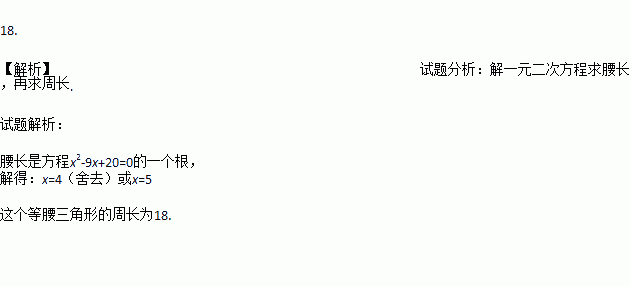 已知等腰三角形底边长8,腰长是方程x2﹣9x+20=0的一个根,求这个等腰三角形的周长.