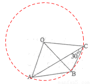 如下图OA=OB=OC且∠ACB=30°,则∠AOB的大小是【 】![]()