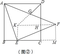 (2)过点F作FM⊥BC,交BC的延长线于点GM,倍长DG至K,连FK交CD于点H、连接EK,证△ABE≌△EGF,推出FG=BE,AB=EG=BC,证△ADG≌△FKG,推出∠ADG=∠FKG,AD=KF=EM=AB=BC,求出DK=$\sqrt{2}$KH=$\sqrt{2}$EC即可;