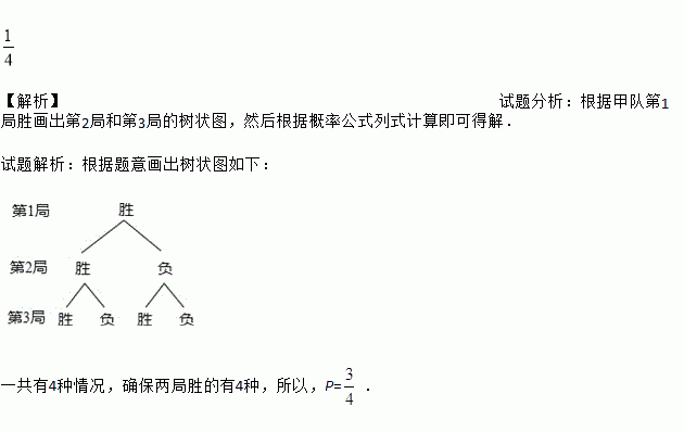 在2017年“KFC”篮球赛进校园活动中,某校甲、乙两队进行决赛,比赛规则规定:两队之间进行3局比赛,3局比赛必须全部打完,只要赢满2局的队为获胜队,假如甲、乙两队之间每局比赛输赢的机会相同,且乙队已经赢得了第1局比赛,那么甲队获胜的概率是多少?(请用“画树状图”或“列表”等方法写出分析过程)
