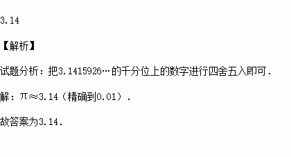 (2014秋•宜兴市期末)取圆周率π=3.1415926…的近似值时,若要求精确到0.01,则π≈ .