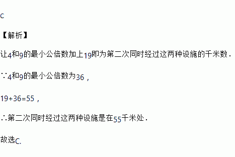 高速公路上,从3千米处开始,每隔4千米经过一个限速标志牌,并且从10千米处开始,每隔9千米经过一个速度监控仪,司机小王刚好在19千米的A处第一次同时经过这两种设施,那么,司机小王第二次同时经过这两种设施需要从A处继续行驶( )千米.