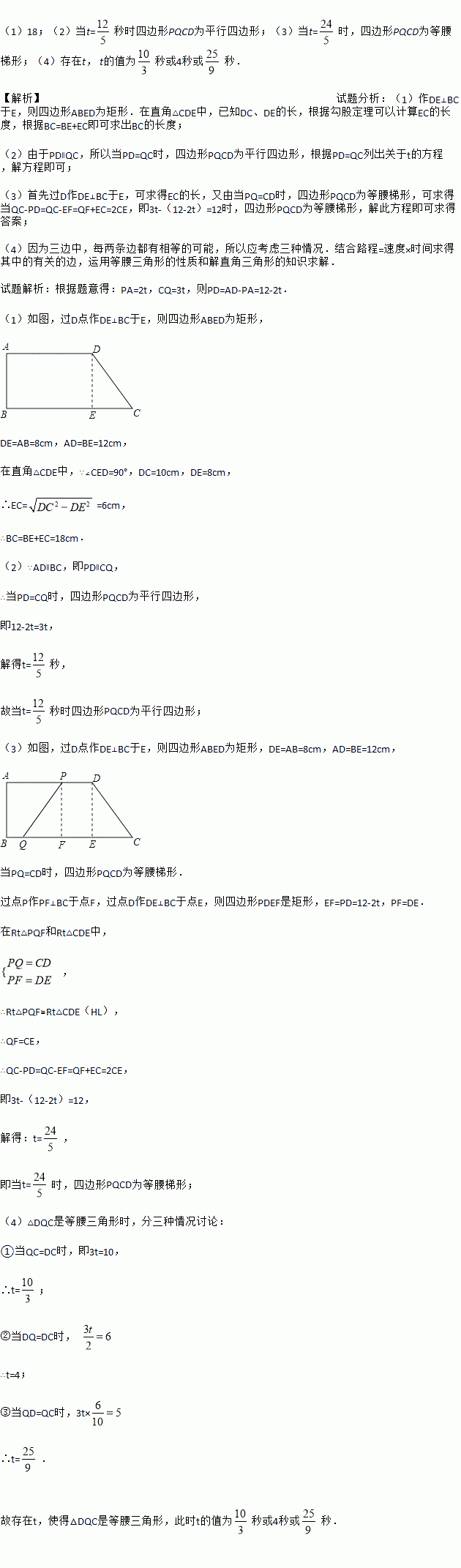 (3)当t为多少时,四边形PQCD为等腰梯形?