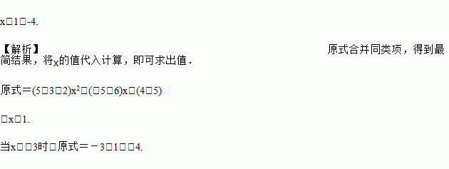 先化简,再求值:5x2+4-3x2-5x-2x2-5+6x,其中x=-3.
