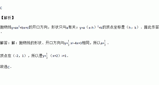 x2﹣4x+3相同,顶点在(﹣2,1),则关系式为( )