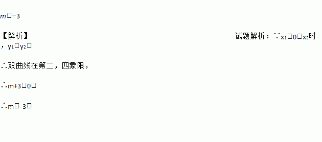 设反比例函数 y=,(x1,y1),(x2,y2)为其图象上两点,若x1<0< x2,y1> y2,则m的取值范围是______.