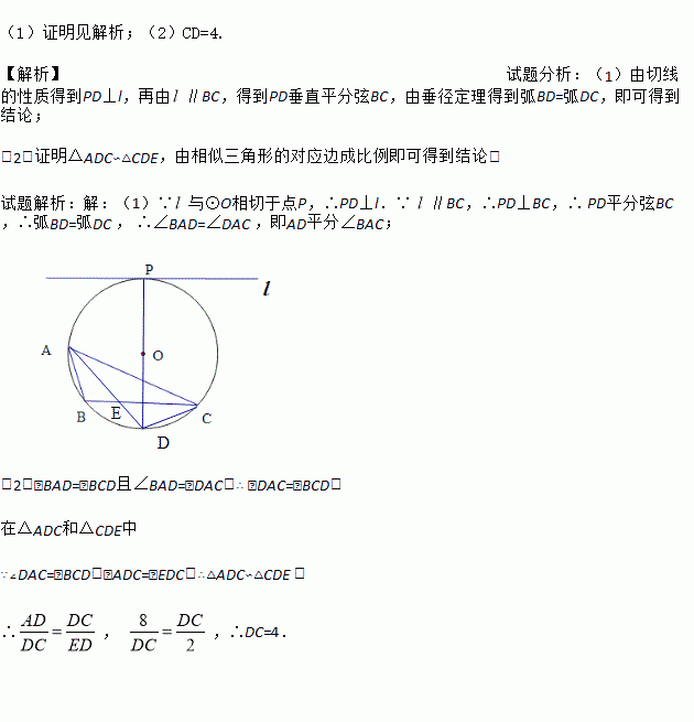 (1) 连接PO,并延长交⊙O于点D,连接AD.证明: AD平分∠BAC;