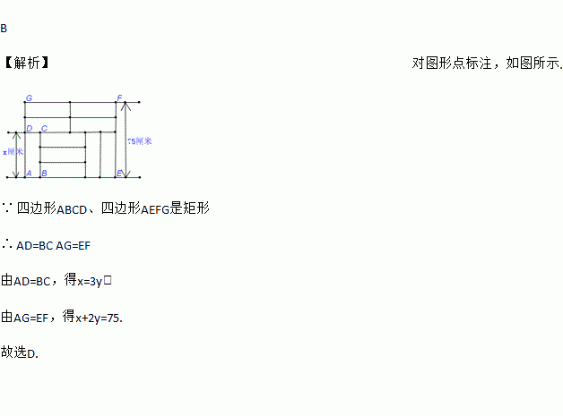 如图,10块相同的小长方形墙砖拼成一个长方形,设小长方形墙砖的长和宽分别为x厘米和y厘米,则依题意列方程正确的是( )