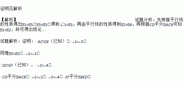 如图,已知AC∥DE,DC∥EF,CD平分∠BCD.求证:EF平分∠BED.