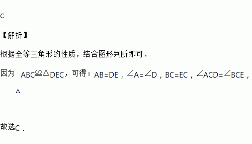 如图所示,△ABC≌△DEC,则不能得到的结论是( )