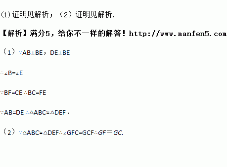 求证:(1)△ABC≌△DEF;(2)GF=GC。