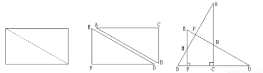 一张矩形纸片沿对角线剪开,得到两张三角形纸片,再将这两张三角形纸片摆成如下右图形式,使点B、F、C、D在同一条直线上.