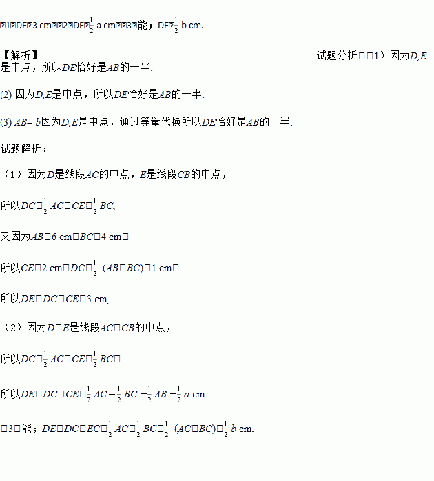 (1)如果AB=6 cm,BC=4 cm,试求线段DE的长;