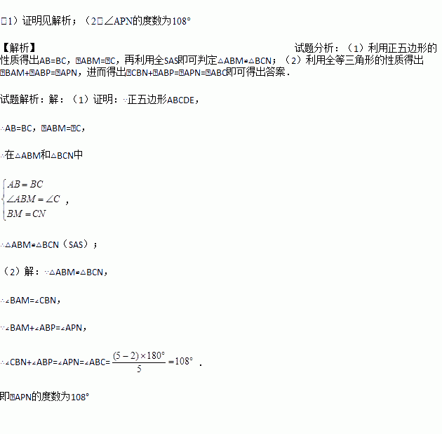如图,点M、N分别是正五边形ABCDE的边BC、CD上的点,且BM=CN,AM交BN于点P.