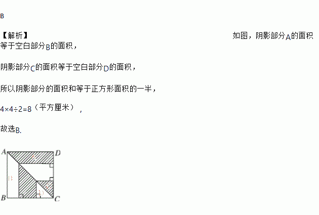 如图,正方形ABCD的边长为4cm,则图中阴影部分的面积为( )