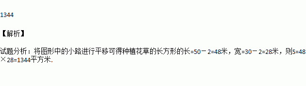如图所示,在长为50米,宽为30米的长方形地块上,有纵横交错的几条小路(图中阴影部分),宽均为2 米,其他部分均种植花草,则种植花草的面积是____________米2;
