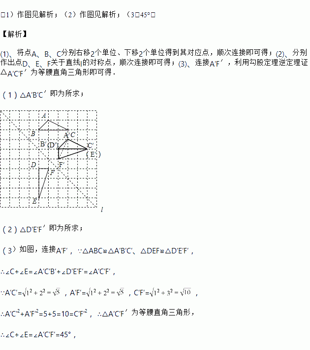 如图,在边长为1个单位长度的小正方形组成的网格中,给出了格点△ABC和△DEF(顶点为网格线的交点),以及过格点的直线l.